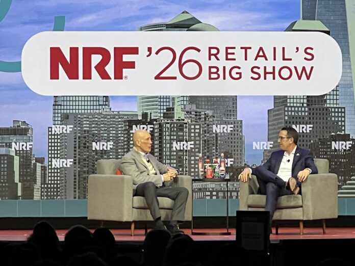 Speakers and attendees at the National Retail Federation Big Show in New York City, Jan. 11, 2026. Photos by Elizabeth Glagowski